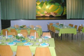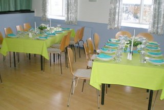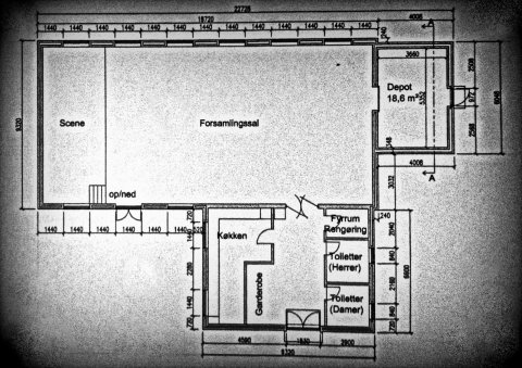 Herunder kan du se foto fra salen samt en plantegning over huset.